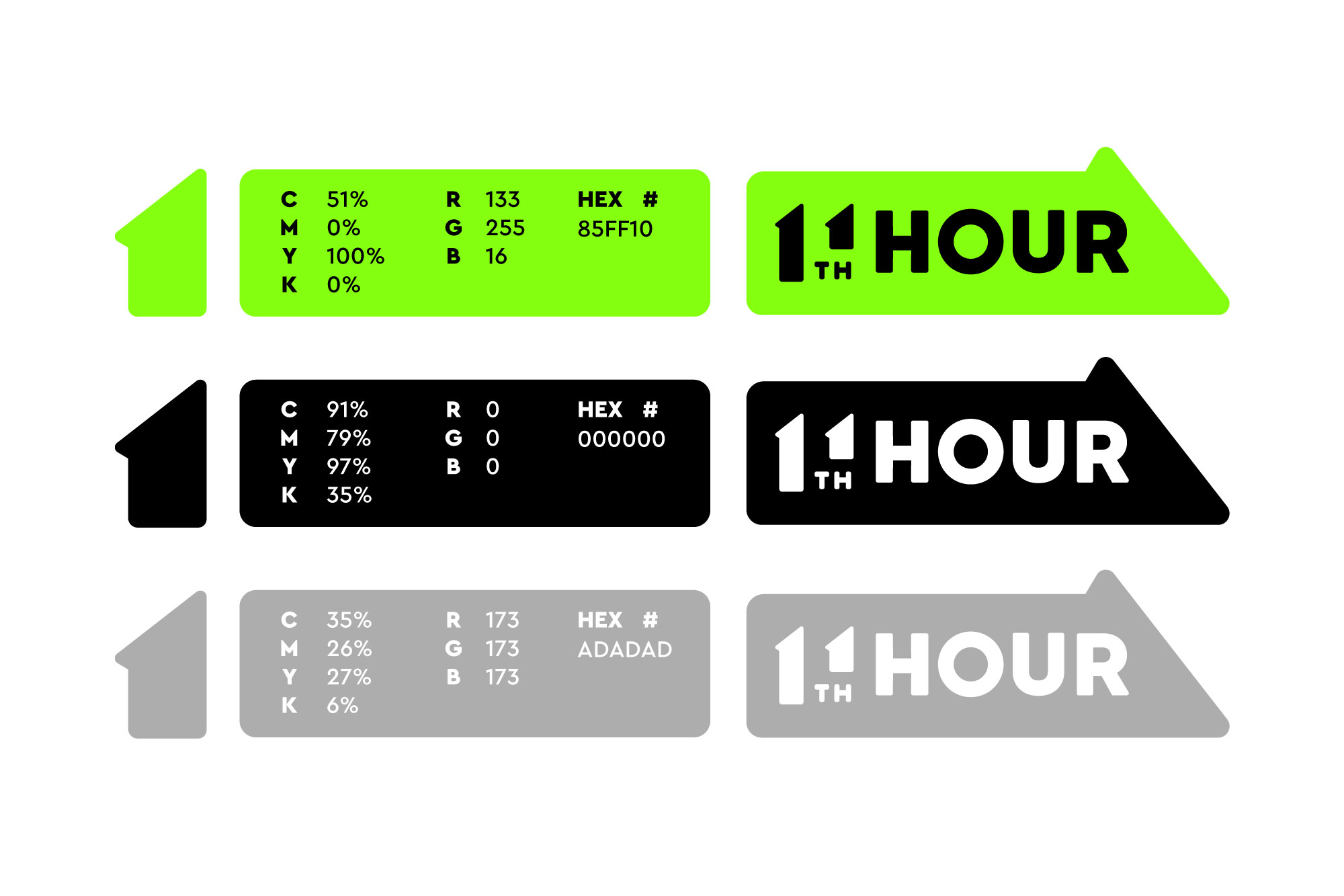 El "11" en el logotipo funciona conceptualmente como un conector de las dos partes de la app: los trabajadores que prestan sus servicios y los consumidores que los contratan. Ambas partes están representadas por la forma de una casa, que aluden a los servicios domésticos que 11th hour puede ofrecer. Además, la tipografía tiene formas básicas y aporta simplicidad y fuerza, con bordes redondeados para darle un aspecto fresco y amigable. El color verde refleja la energía y el pensamiento creativo, pero también se asocia con la seguridad. -