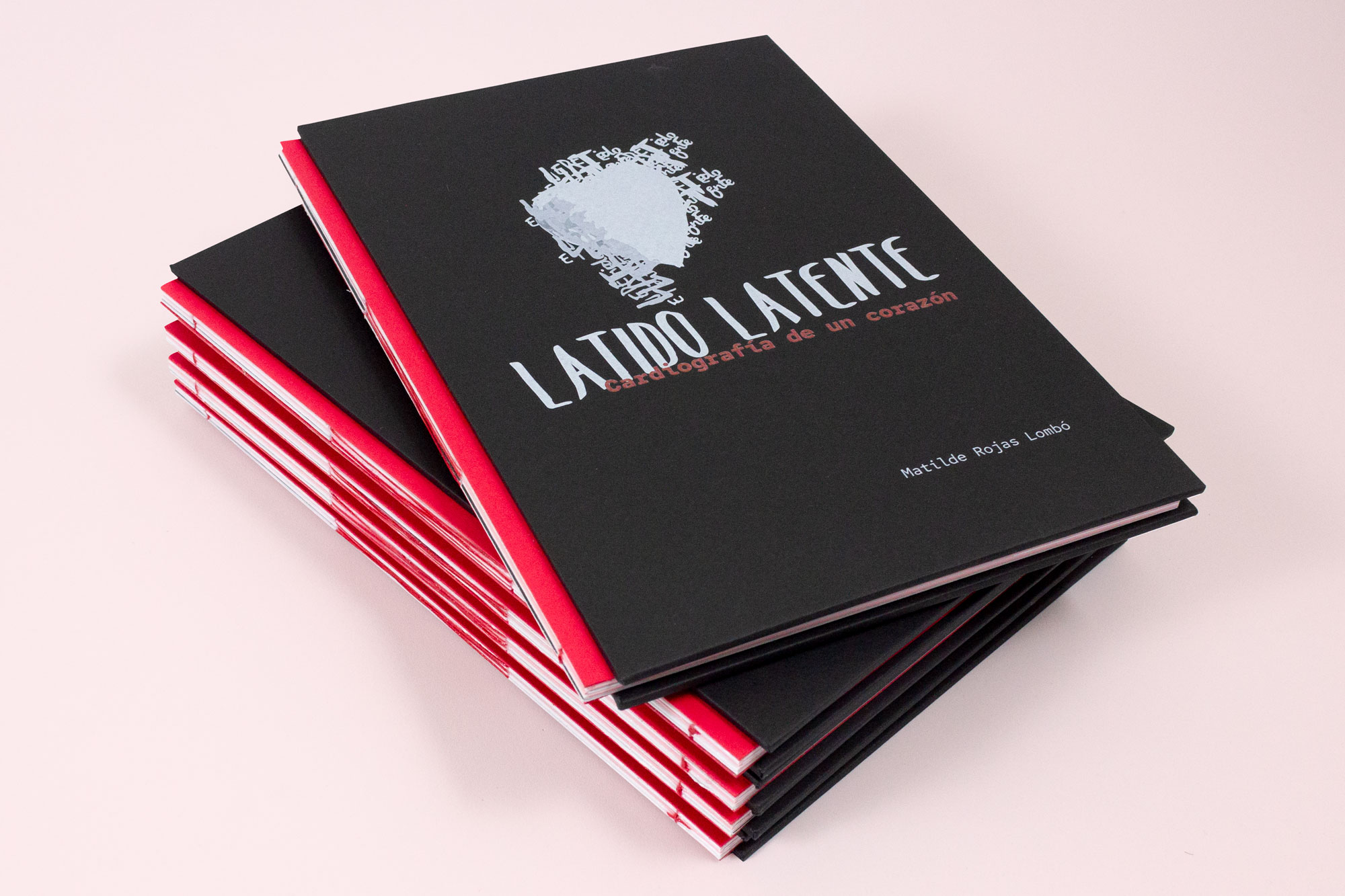 Latido Latente. Cardiografía de un corazón. es un libro objeto que hicimos en co creación con Matilde Rojas. Es un recorrido metafórico por los caminos inexplorados e invisibles que ha escrito el corazón de la autora.