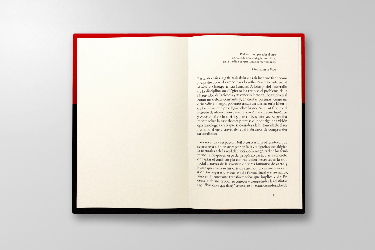 Para la portada elaboramos una ilustración con formas que representan la dualidad positiva-negativa en la que los ninis se desenvuelven y son excluidos de la sociedad. Los colores enfatizan la situación de desigualdad y falta de oportunidades que enfrentan estos jóvenes. El diseño resalta el valor literario de este trabajo de investigación. -